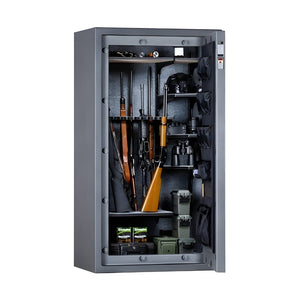The Rhino RX6636 Raptor Series Gun Safe has a SafeX™ Security System and Rhino Vector™ Interior which are innovative features in a safe, designed to enhance security and interior space. The anti-pry technology of the SafeX™ Security System is designed to prevent unauthorized access by interlocking the body and door together securely, making it difficult for anyone to pry the door open. Meanwhile, the Rhino Vector™ Interior appears to offer flexibility in terms of storage options, maximizing the space inside the safe for better organization and access. Together, these features could offer improved security and convenience for anyone looking for a safe storage solution.