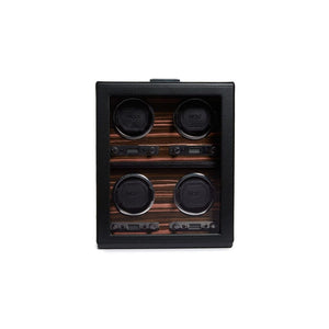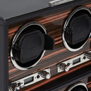 Aged wood dashboards, chrome spoked wheels, leather that is glove soft. The Wolf 459156 Roadster Four Watch Winder - inspired by the best of British motorcars, Jaguar, Aston Martin, Bristol and the like. Turning your watch perfectly to a precise number of turns, the Roadster 4-piece winder’s ebony macassar polished wood and chrome finished hardware makes the perfect backdrop for your watch.