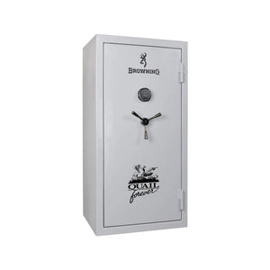 Browning Safes became a preferred partner for gun safes with Quail Forever to produce this special Upland edition of our Sporter-33 gun safe. Brandishing upland vest colors on the interior door panel and the Quail Forever logo on the door, this safe is clearly unique. The versatile gun safe delivers impressive security and quality in a cost-effective package. Rely on durable 12-gauge steel, 3-way chrome locking bolts, and up to an hour of fire and heat protection at 1,400°. Configure your CMS adjustable shelving for the perfect personalized layout.Ā