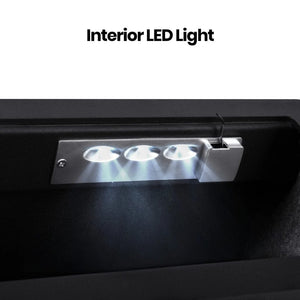No need to worry about electronics or keys. TheĀ VS-20SX Gun SafeĀ is made of alloy steel and is pry resistant with a uniābody construction for added strength. It is seamlessly welded and finished with a matte black military coating. The interior includes soft padded carpet to protect valuables and anĀ interior LED lightĀ for convenience.