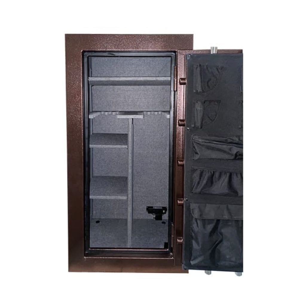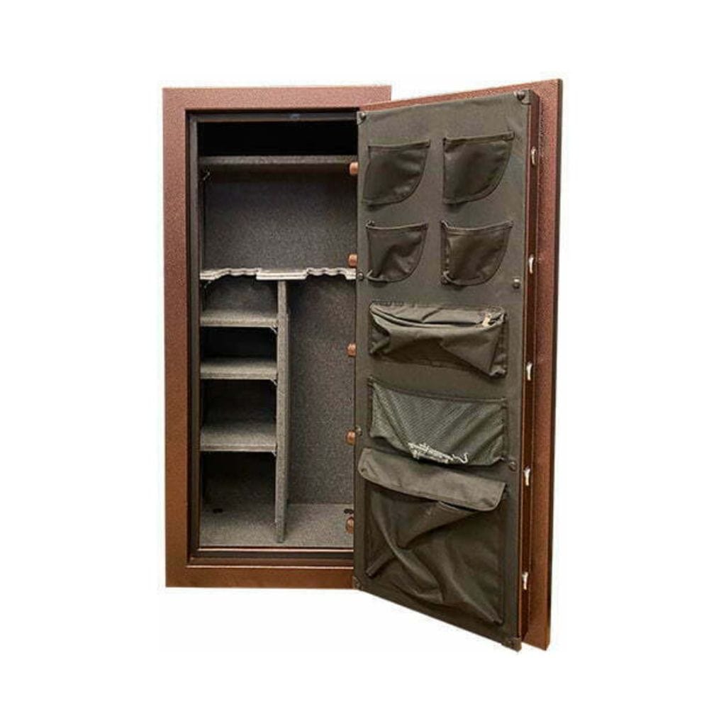 Each safe is equipped with drill-resistant hard plates and 1.5-inch chrome steel locking bolts for enhanced protection. Depending on the model, fire resistance ranges from 45 to 90 minutes. Users can choose between an S&G Group 2 Dial or a UL Listed Type 1 Electronic Lock for secure and reliable access. With spacious interiors and varying gun capacities, the Dominion Series is a reliable solution for keeping your firearms safe.