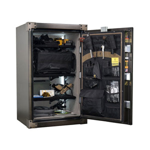 From the weathered Metal Glaze finish to the rugged security and fire protection features that protect your guns and most valuable possessions, the Browning 1878-13 Fire Safe is one tough safe. It features the industry-leading Axis Adjustable Shelving interior that let's you configure the shelves to optimize storage to meet your exact demands. Due to variations in the metal used to construct the body and door, every 1878 safe is unique, with an individual look and character of its own. 1878 safes are made in the USA.