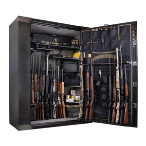 From the weathered Metal Glaze finish to the rugged security and fire protection features that protect your guns and most valuable possessions, the Browning 1878-65 Gun Safe is one tough safe. It features the industry-leading Axis Adjustable Shelving interior that let's you configure the shelves to optimize storage to meet your exact demands. Due to variations in the metal used to construct the body and door, every 1878 safe is unique, with an individual look and character of its own. 1878 safes are made in the USA.