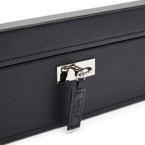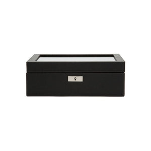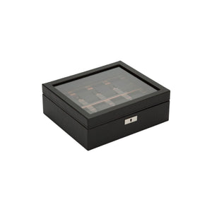 Inspired by the best of British motorcars, Jaguar, Aston Martin, Bristol and the like. The Roadster Wolf 477456 Roadster Eight Piece Watch Box wrapped in leather with details of ebony macassar polished wood.