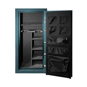The Hollon Dominion Series Gun Safes are designed to provide robust security and fire protection for your firearms. The DOM-11 and DOM-16 feature 12-gauge steel construction, while the DOM-22 features 10 –gauge. This series also features drill-resistant hard plates, and 1.5-inch chrome steel bolts for enhanced security. They offer fire resistance ranging from 45 to 90 minutes, depending on the model. The safes come with a choice of S&G Group 2 Dial or UL Listed Type 1 Electronic Lock, ensuring reliable access control1. With deluxe interiors and multiple gun capacities, the Dominion Series is an excellent choice for safeguarding your firearms.